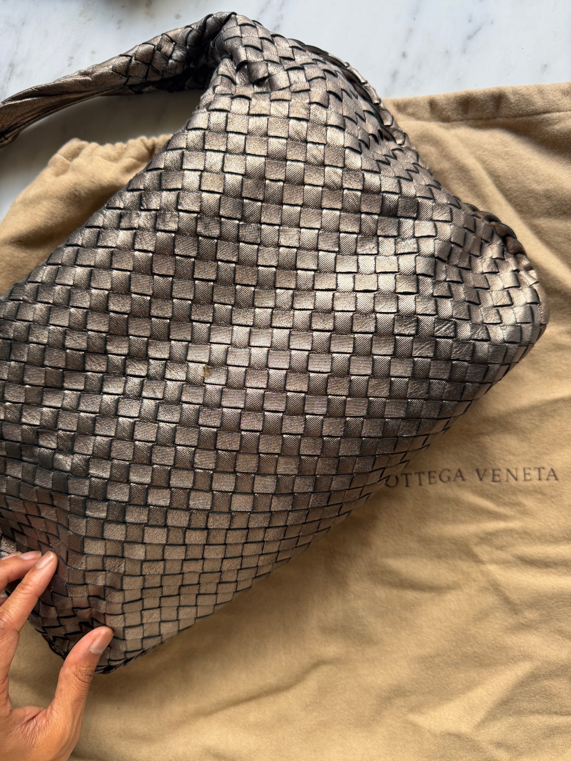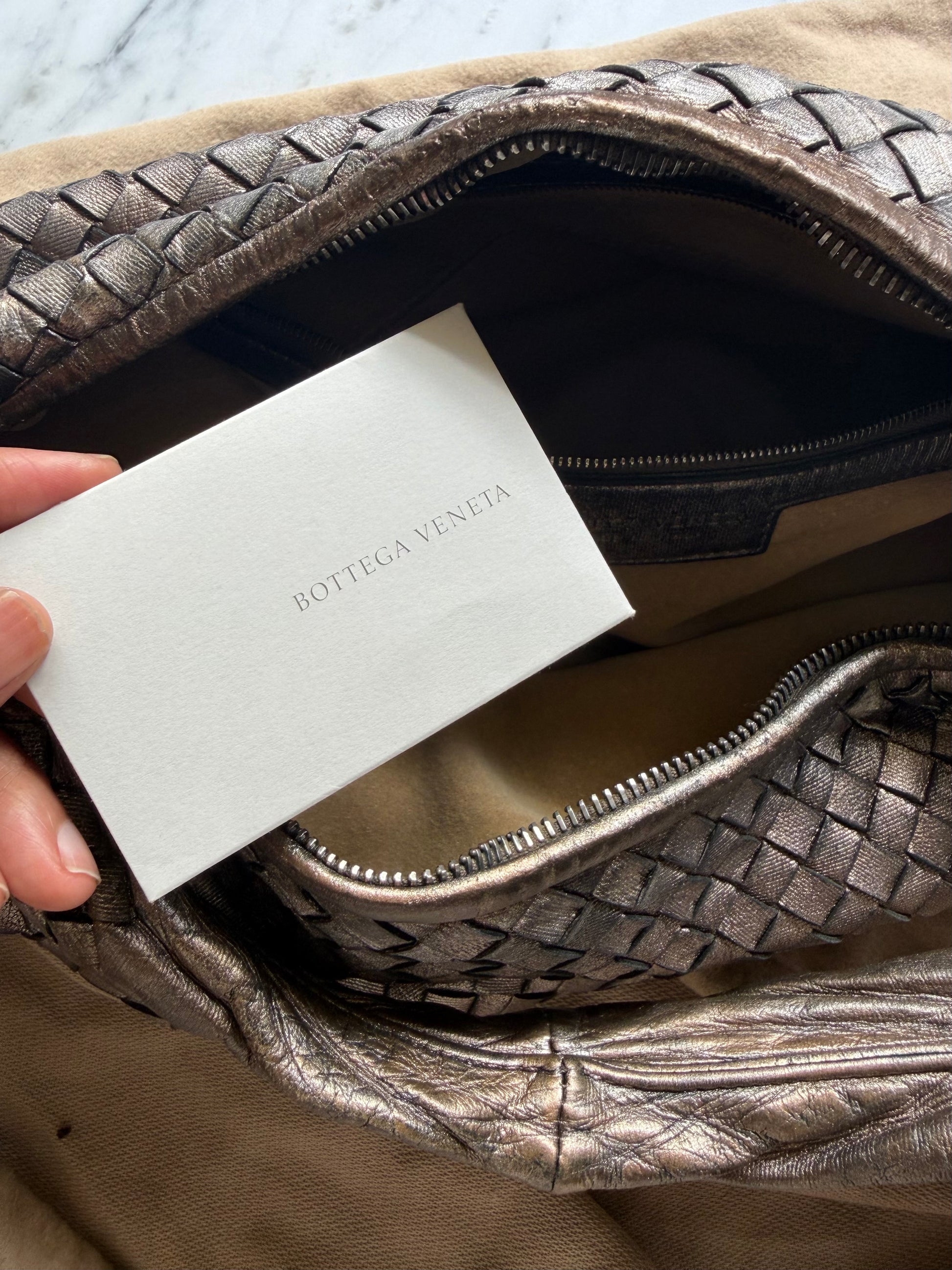 Softly structured and generously sized, it provides ample space for daily essentials, making it both practical and elegant for everyday use. The relaxed silhouette allows the bag to drape naturally, embodying Bottega Veneta’s signature balance of craftsmanship and quiet luxury. Comes with its original dust bag and Entrupy Certificate.
