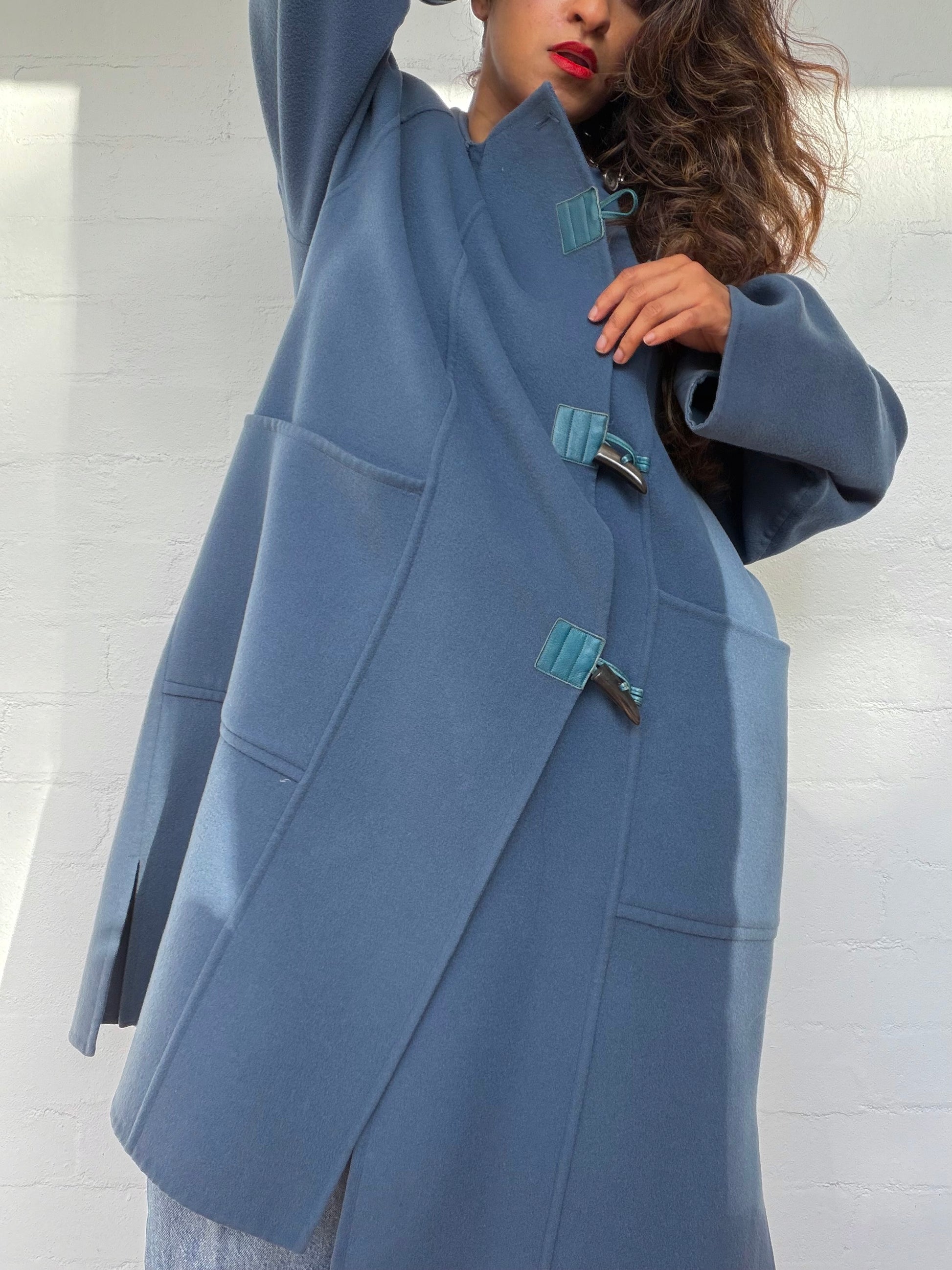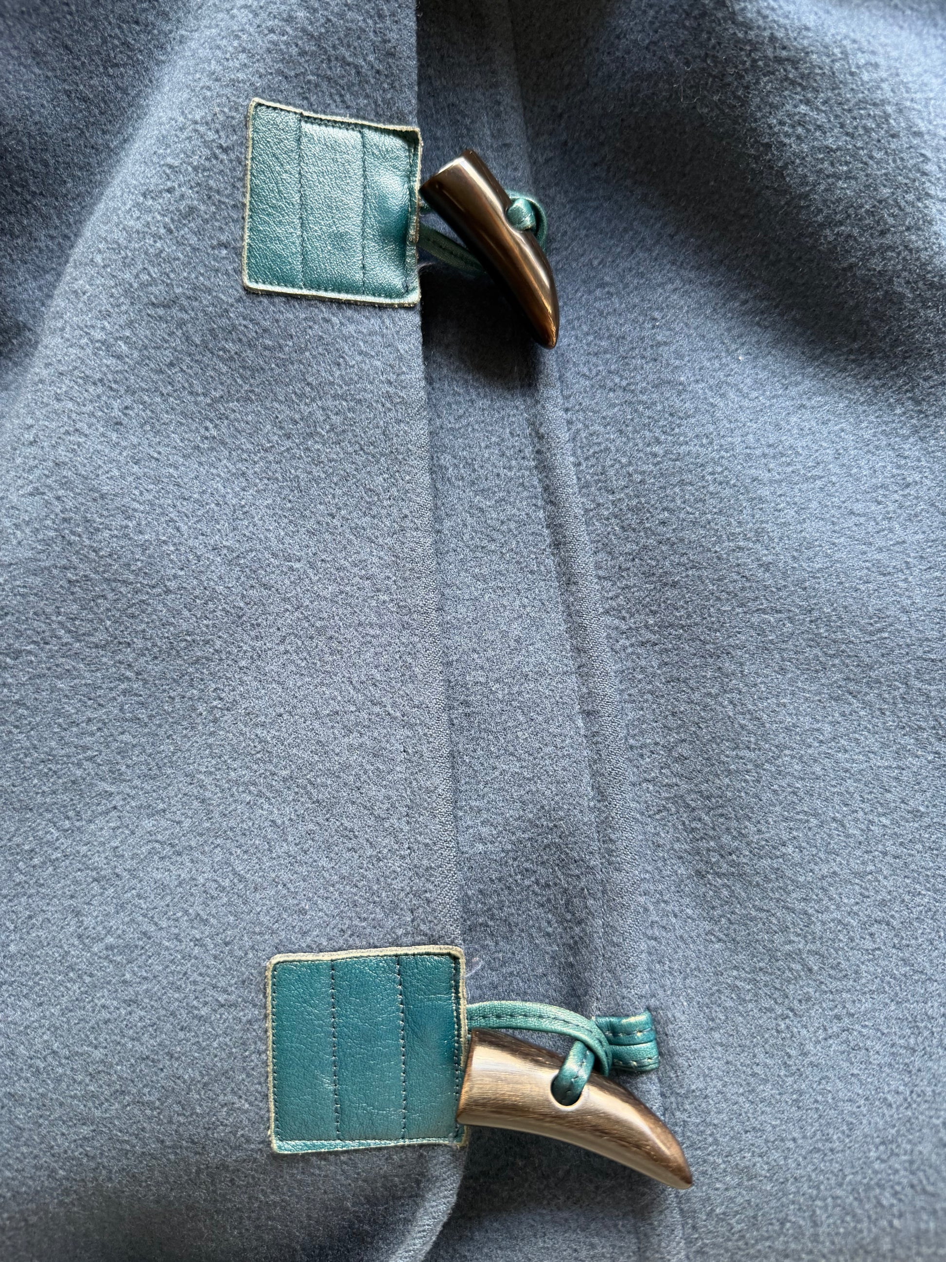 The coat features classic leather trims and traditional toggle closures and a hood giving it an authentic heritage character while remaining effortlessly wearable today. Its structured silhouette creates a strong, elegant shape, balanced by a relaxed midi-length cut that allows for comfortable layering and everyday practicality. Functional pockets and thoughtful tailoring make it as useful as it is timeless.