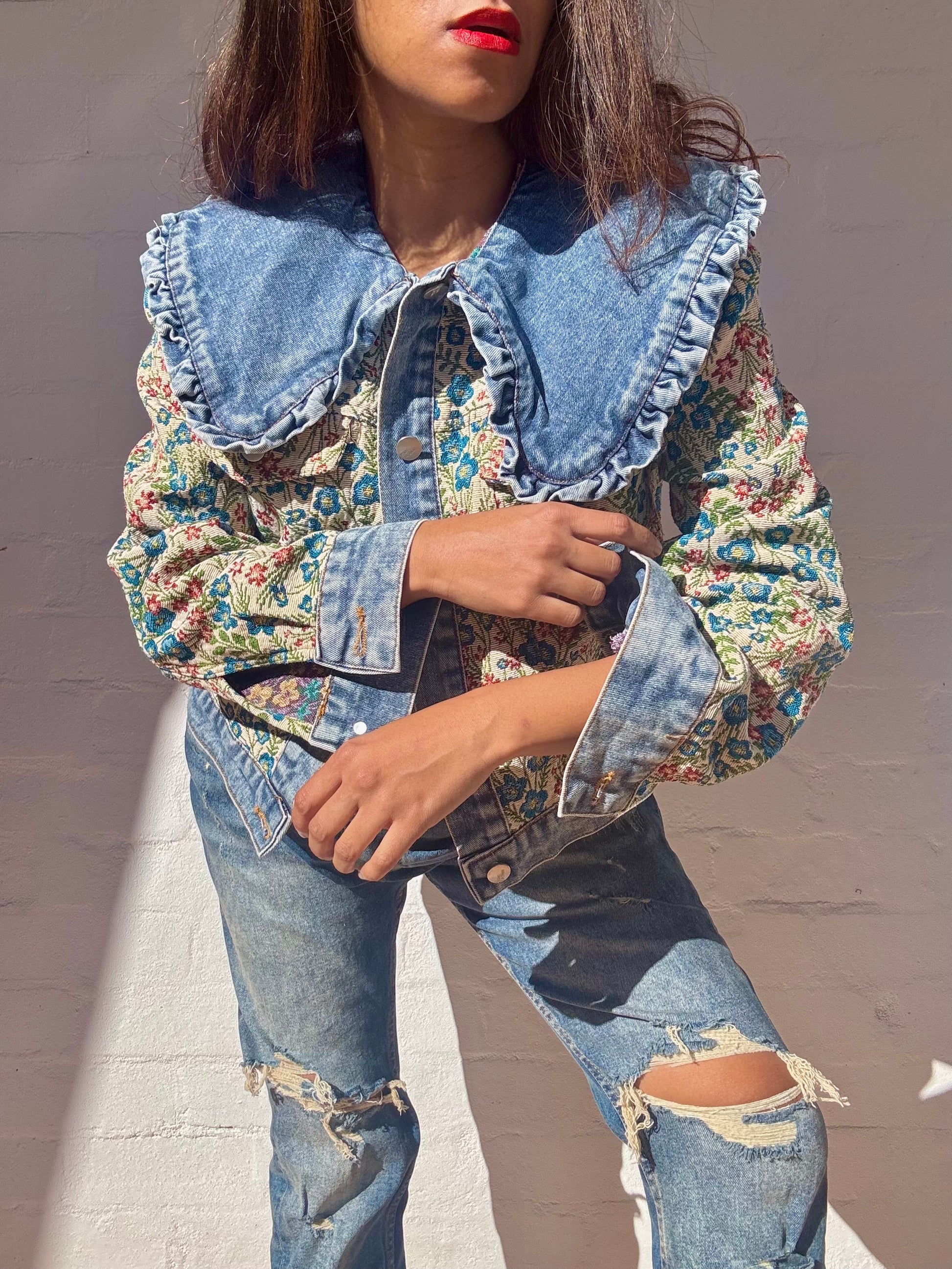 Denim Jacket with Tapestry Style Detailing