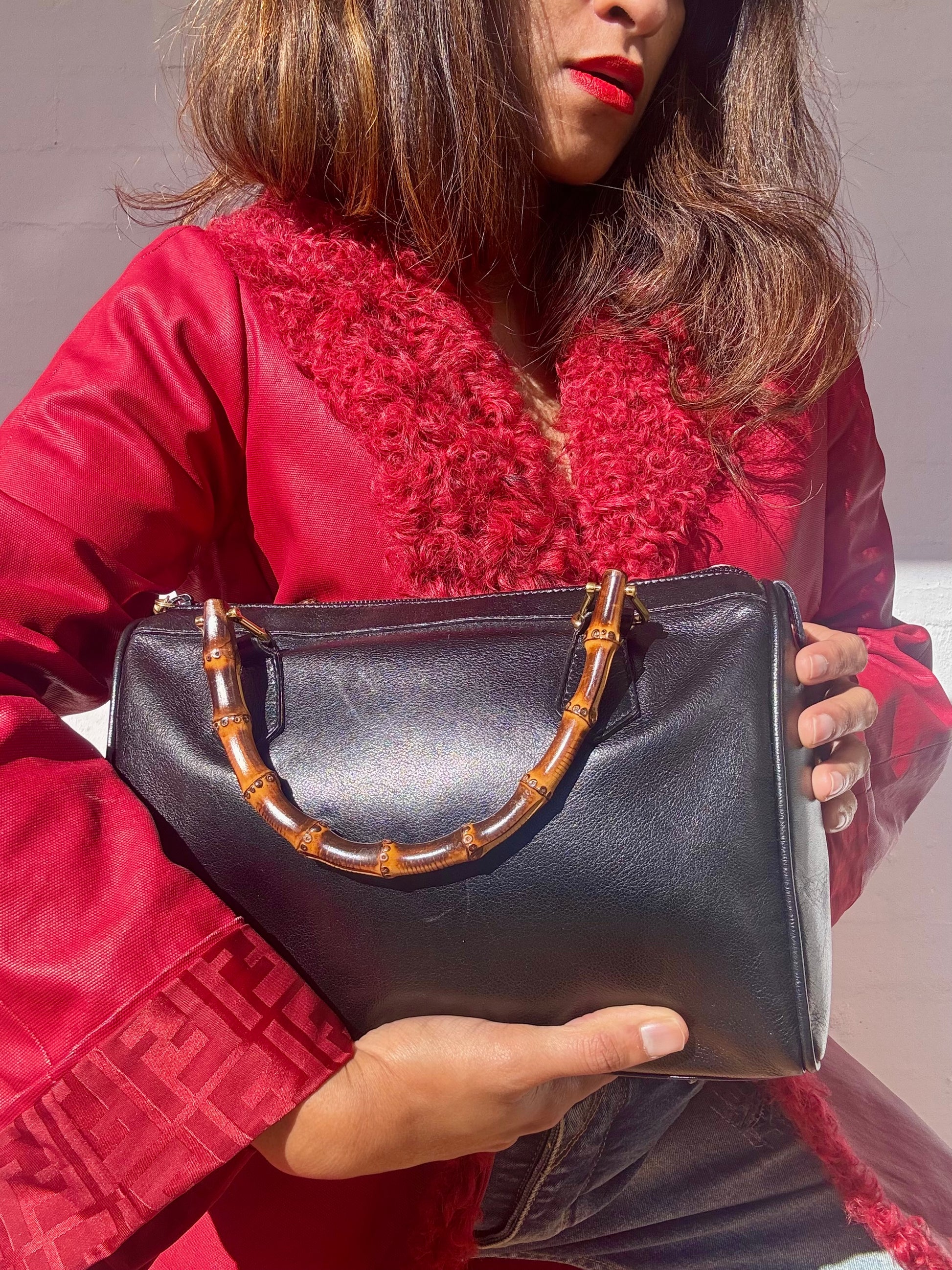 Vintage GUCCI Bamboo Top Handle Bag – Black Leather