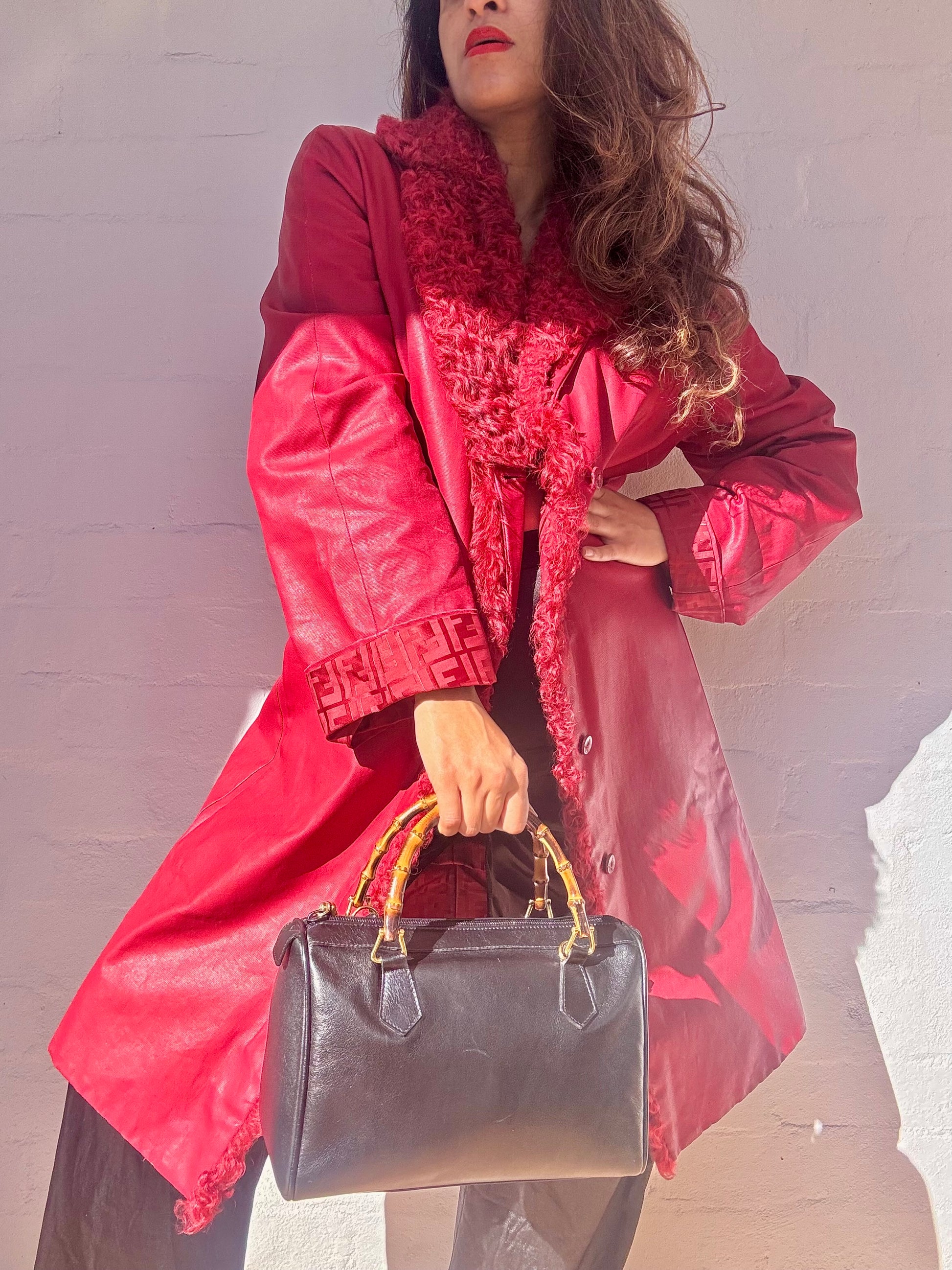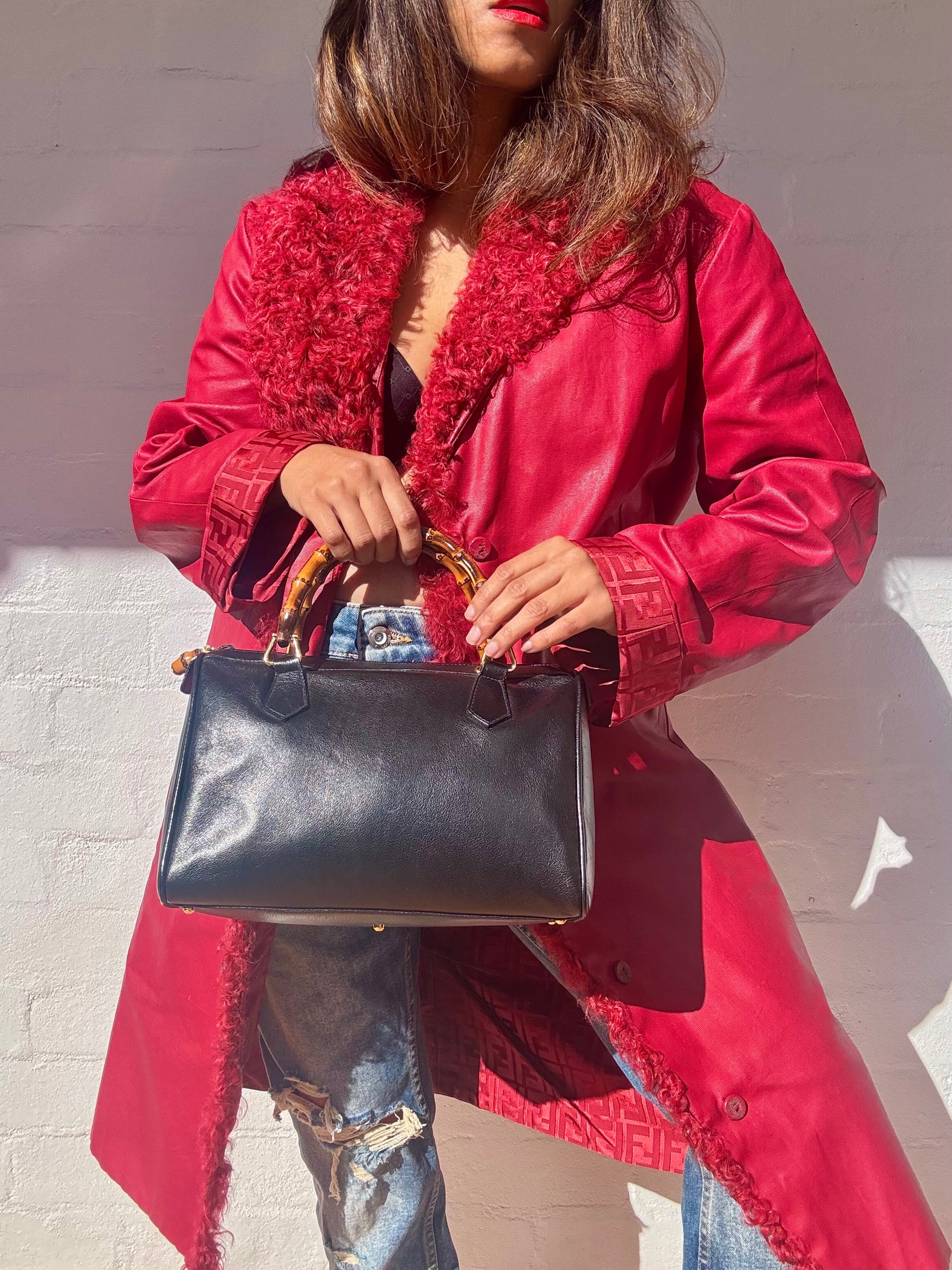 A true icon of the Gucci archive, this GUCCI Bamboo Top Handle Bag embodies timeless sophistication and heritage craftsmanship. Crafted in smooth black leather, the bag features the house’s signature curved bamboo handle a hallmark of innovation and elegance since the 1940s.