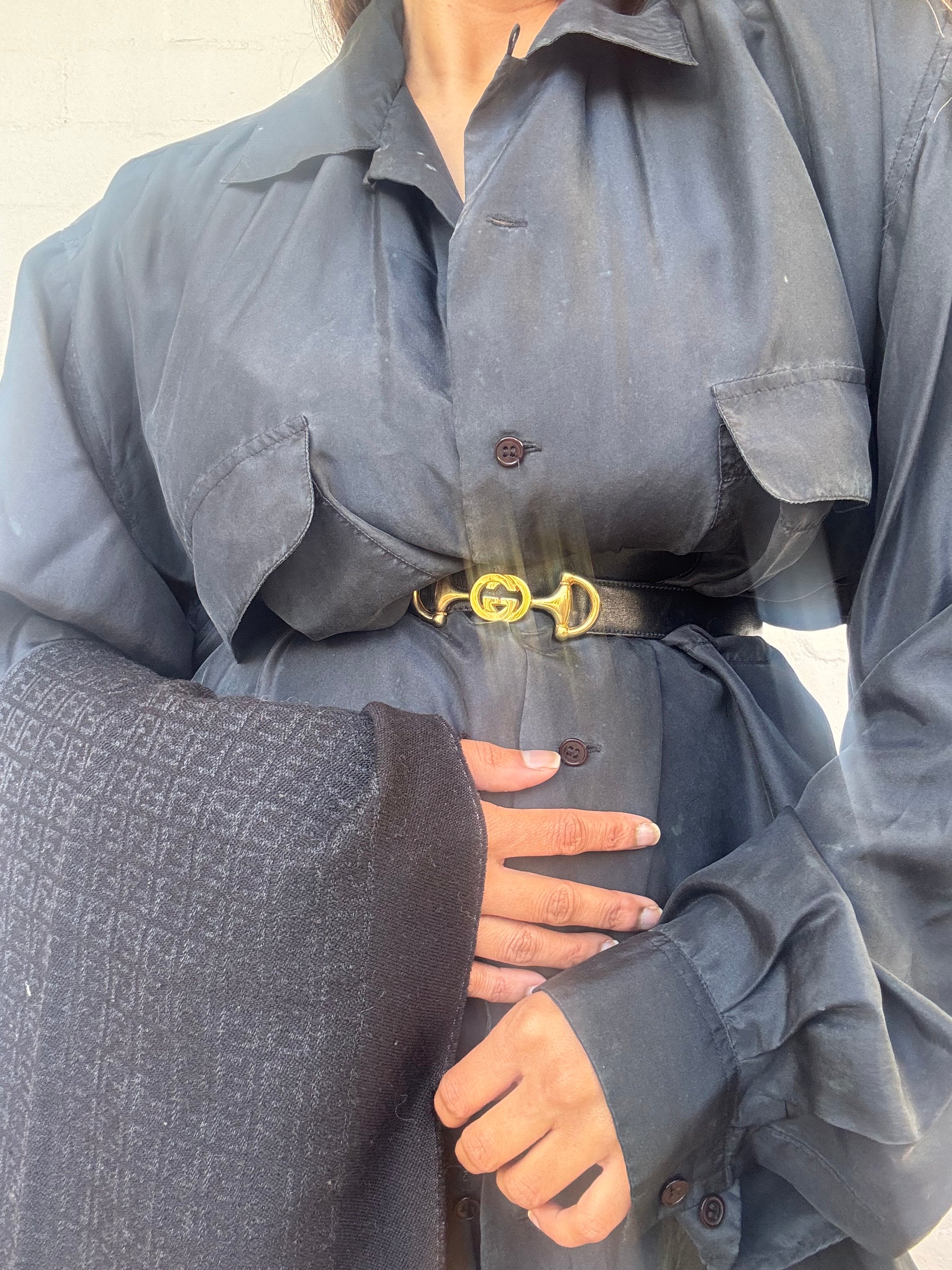 Make a bold entrance with this ultra rare vintage Gucci belt, an extraordinary fusion of two of the house’s most iconic symbols the Interlocking G and the horsebit. Set in gleaming gold-tone hardware and crafted from rich, supple leather, this statement piece channels unmistakable Italian glamour with every wear. An heirloom-worthy treasure for collectors and those who dress with intention.