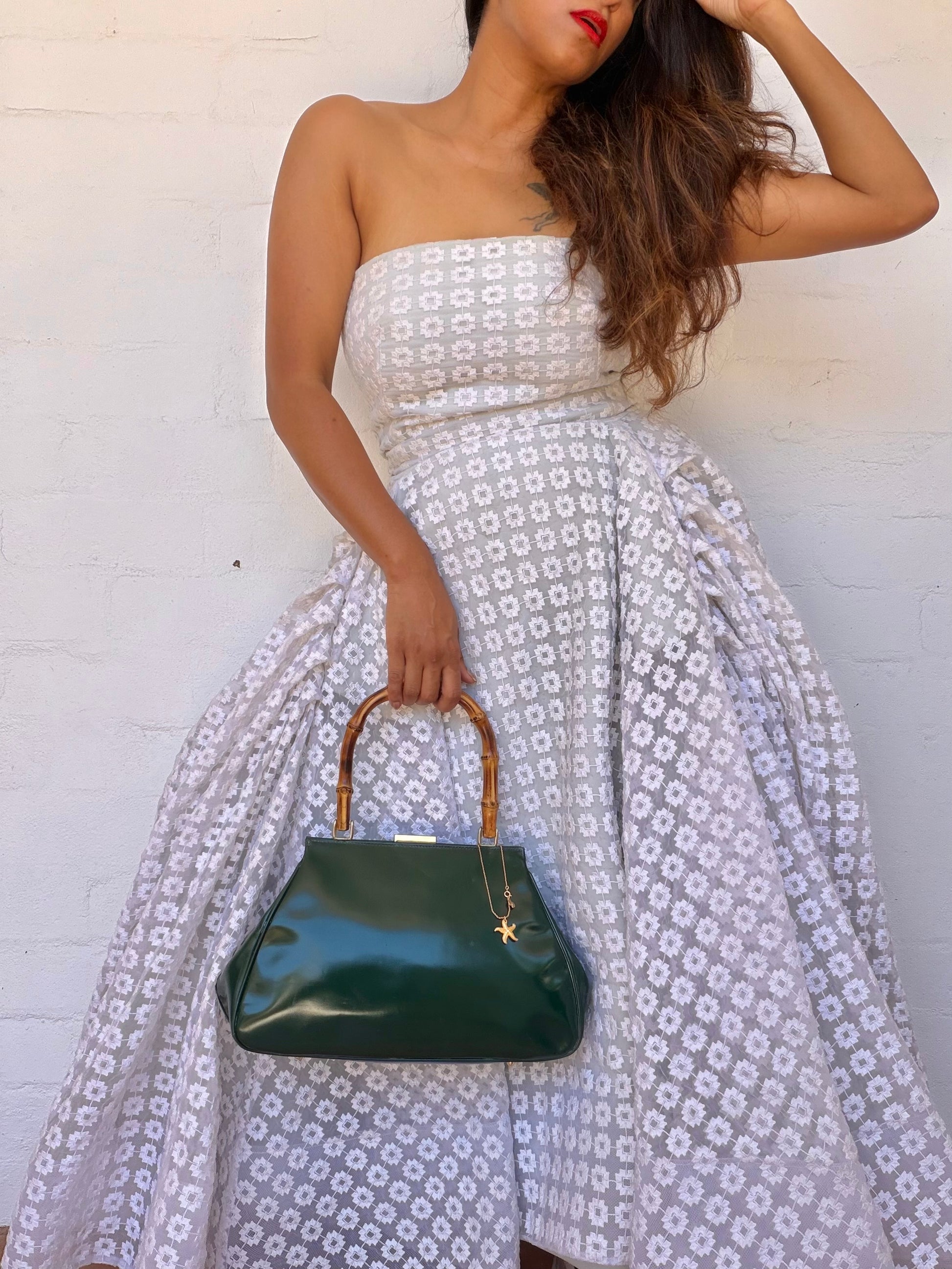 Indulge in the refined allure of this stunning vintage Gucci Tom Ford bamboo handbag, rendered in a captivating bottle green hue. This exquisite piece captures the essence of early 2000s luxury with its iconic bamboo detailing and elegant silhouette. The rich, sophisticated colour palette complements any ensemble, while the impeccable craftsmanship speaks to Gucci's uncompromising standards. Perfect for the discerning collector seeking a statement accessory that seamlessly transitions from day to evening. A rare find that embodies timeless glamour an investment in enduring style and heritage design. Entrupy certificate included.