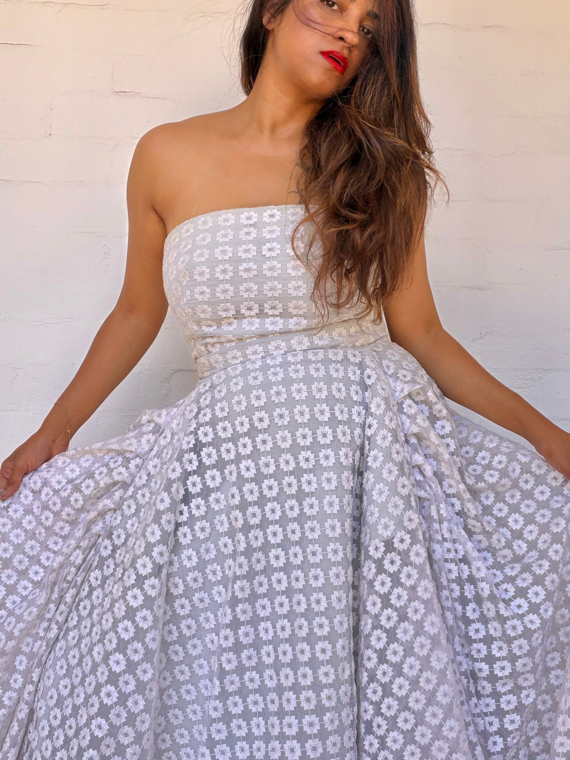 Crafted with meticulous precision, this exquisite lace dress showcases intricate detailing that captures light beautifully. Structured boning creates a flattering silhouette while the sumptuous silk lining ensures comfort against the skin. Proudly made in Australia, this piece combines sophisticated design with impeccable craftsmanship, making it the perfect choice for those who appreciate refined elegance and timeless luxury.