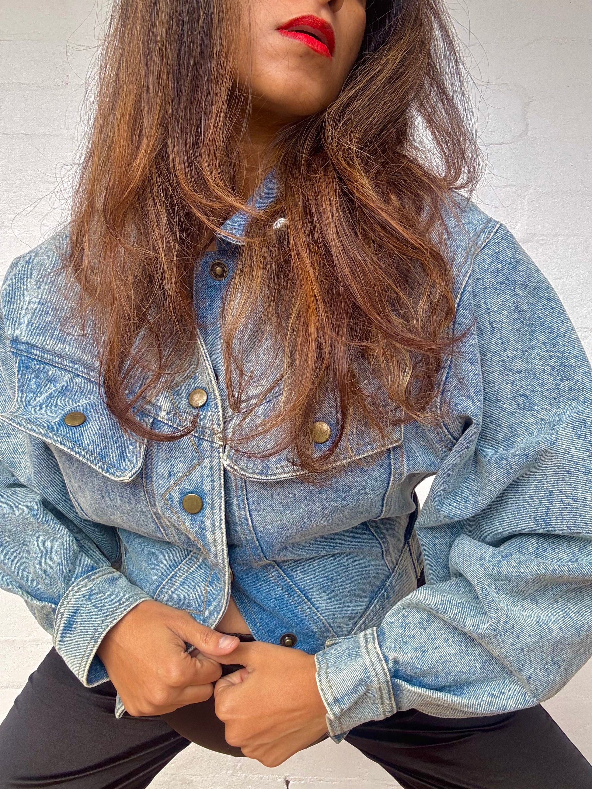 Redefine casual sophistication with this POSSE Cropped Denim Jacket, a standout piece that blends classic utility with modern edge. Designed in a bomber-inspired silhouette, it features batwing sleeves and a structured yet relaxed fit that drapes effortlessly. Crafted from premium denim, the jacket offers a refined take on off-duty dressing with its clean lines, cropped cut, and subtly voluminous shape.