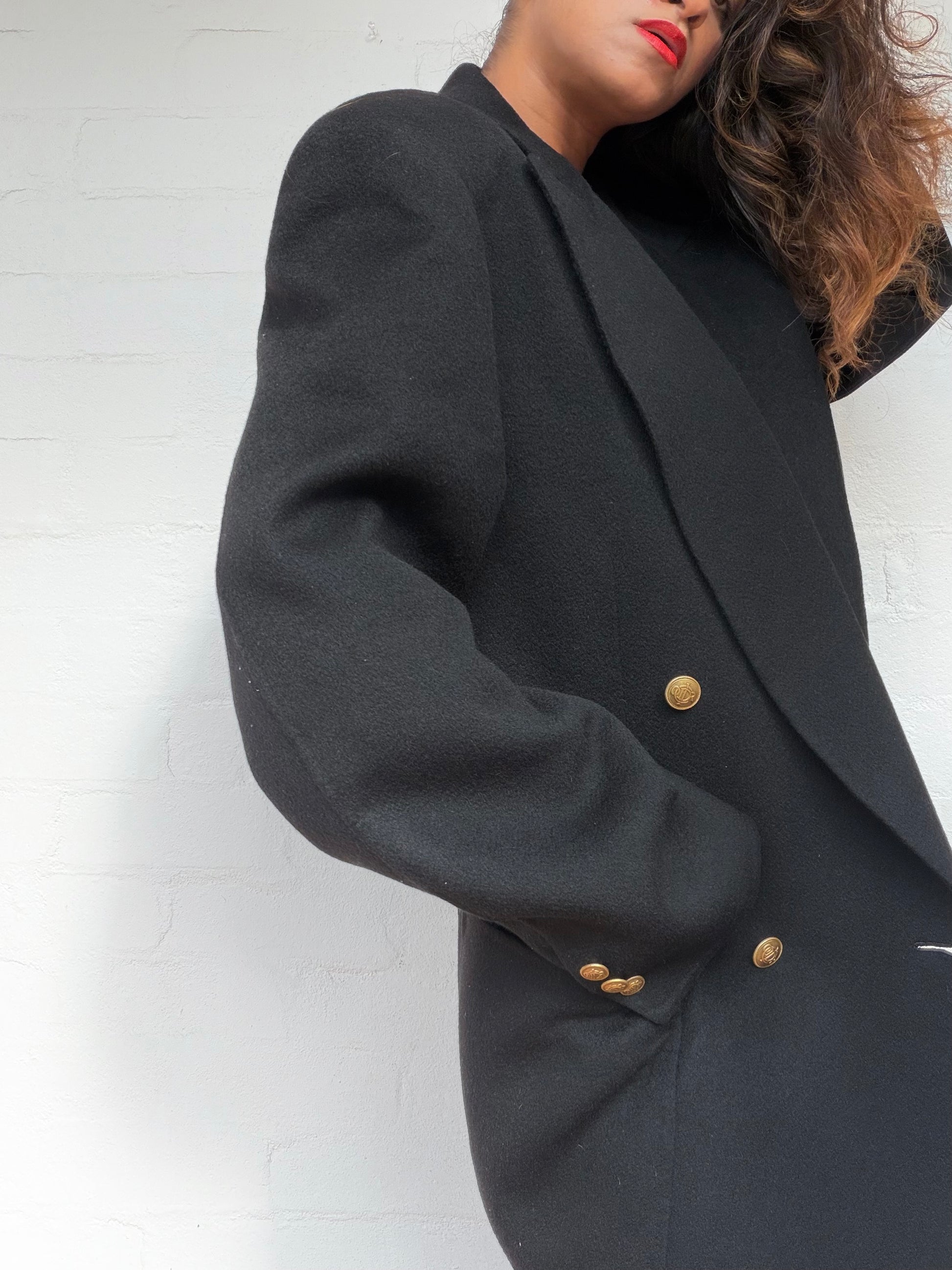 We are pleased to offer this absolutely gorgeous Christian Dior double-breasted tailored jacket in classic black, accented with elegant gold buttons, it is super soft and warm that creates a refined, statement finish.