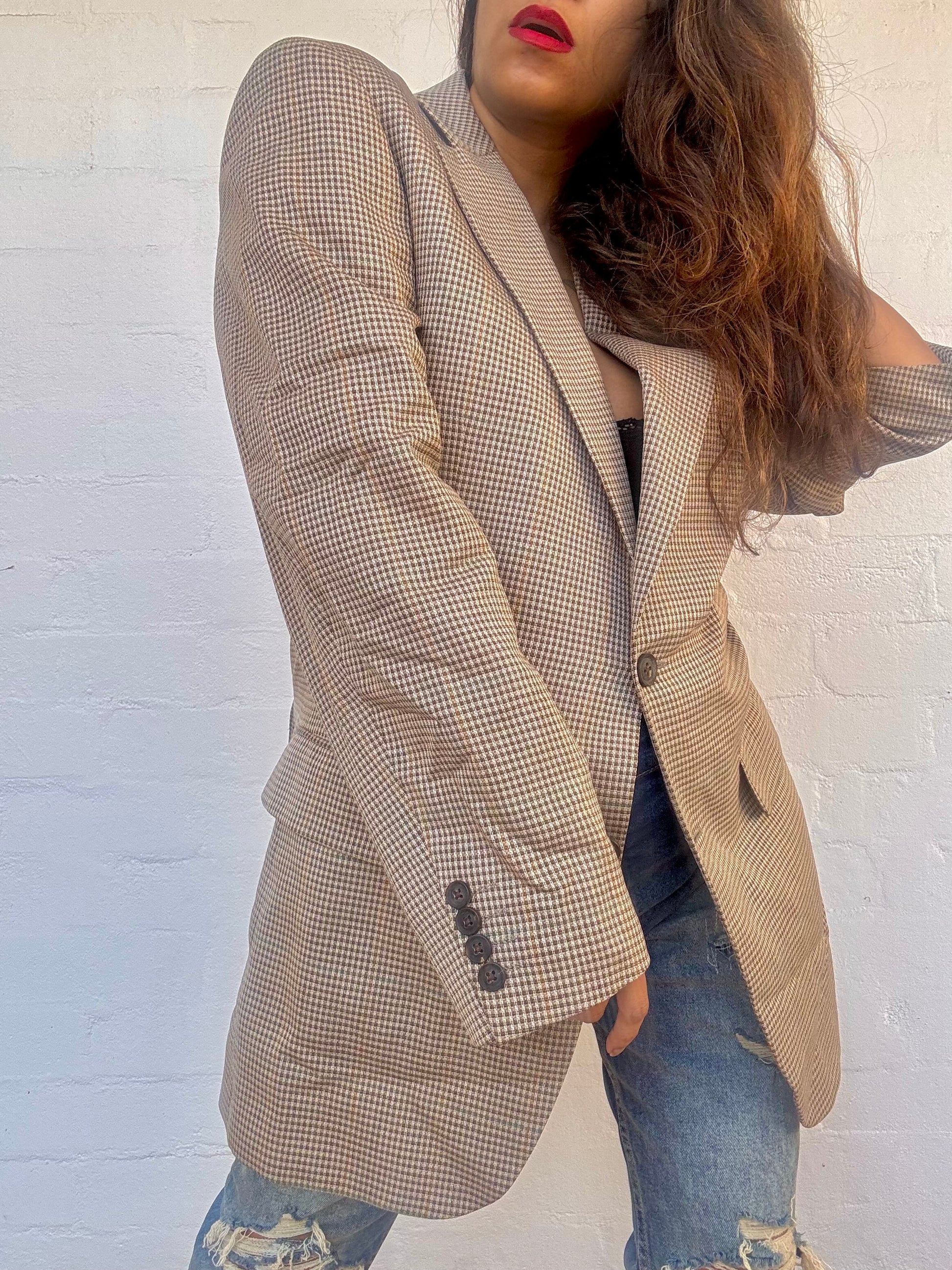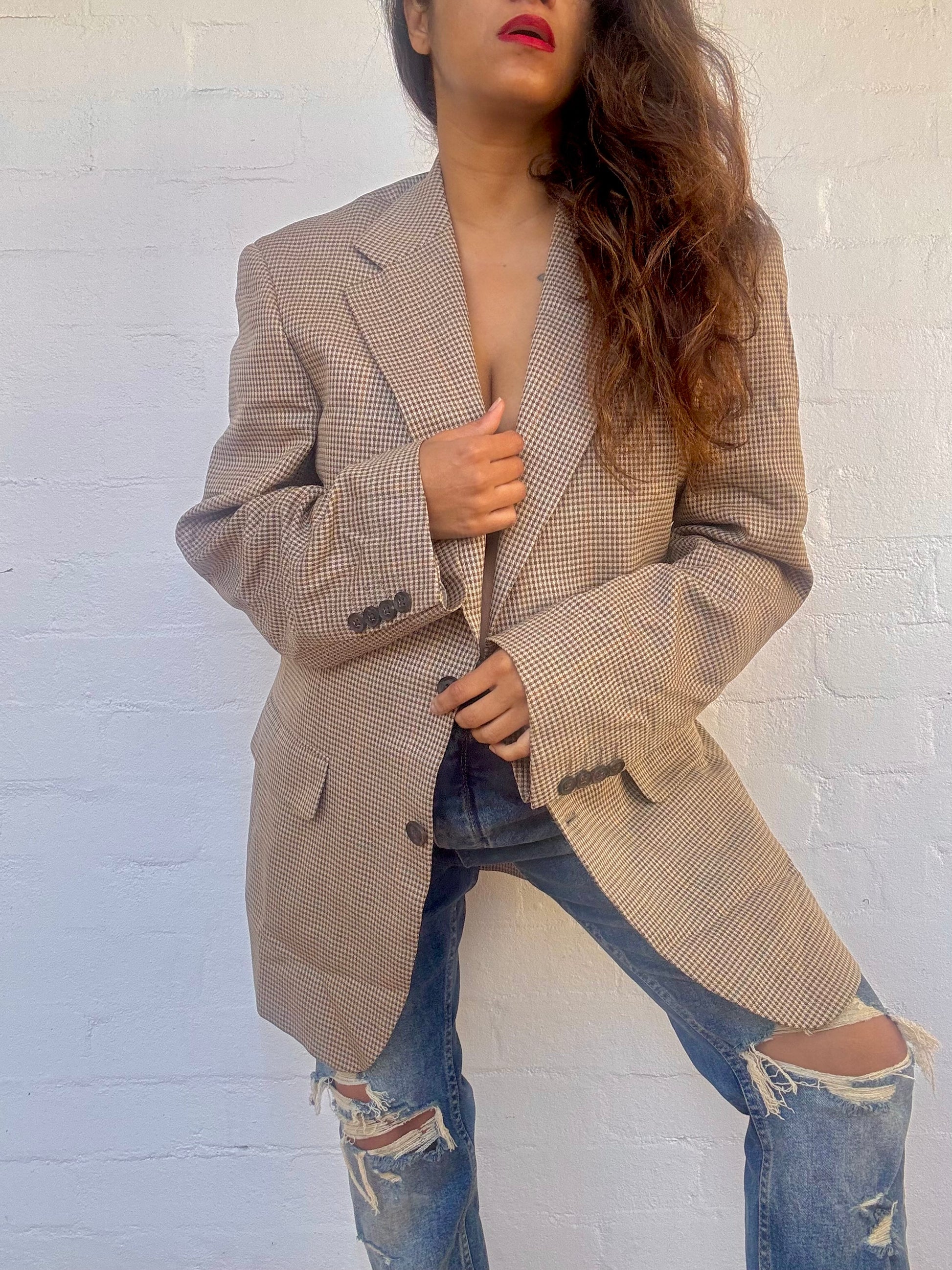 This Vintage Burberry blazer is beautifully tailored from a luxurious silk and wool blend. Designed with a classic check pattern that is subtle yet refined, it embodies the quiet elegance and craftsmanship that define Burberry’s heritage.